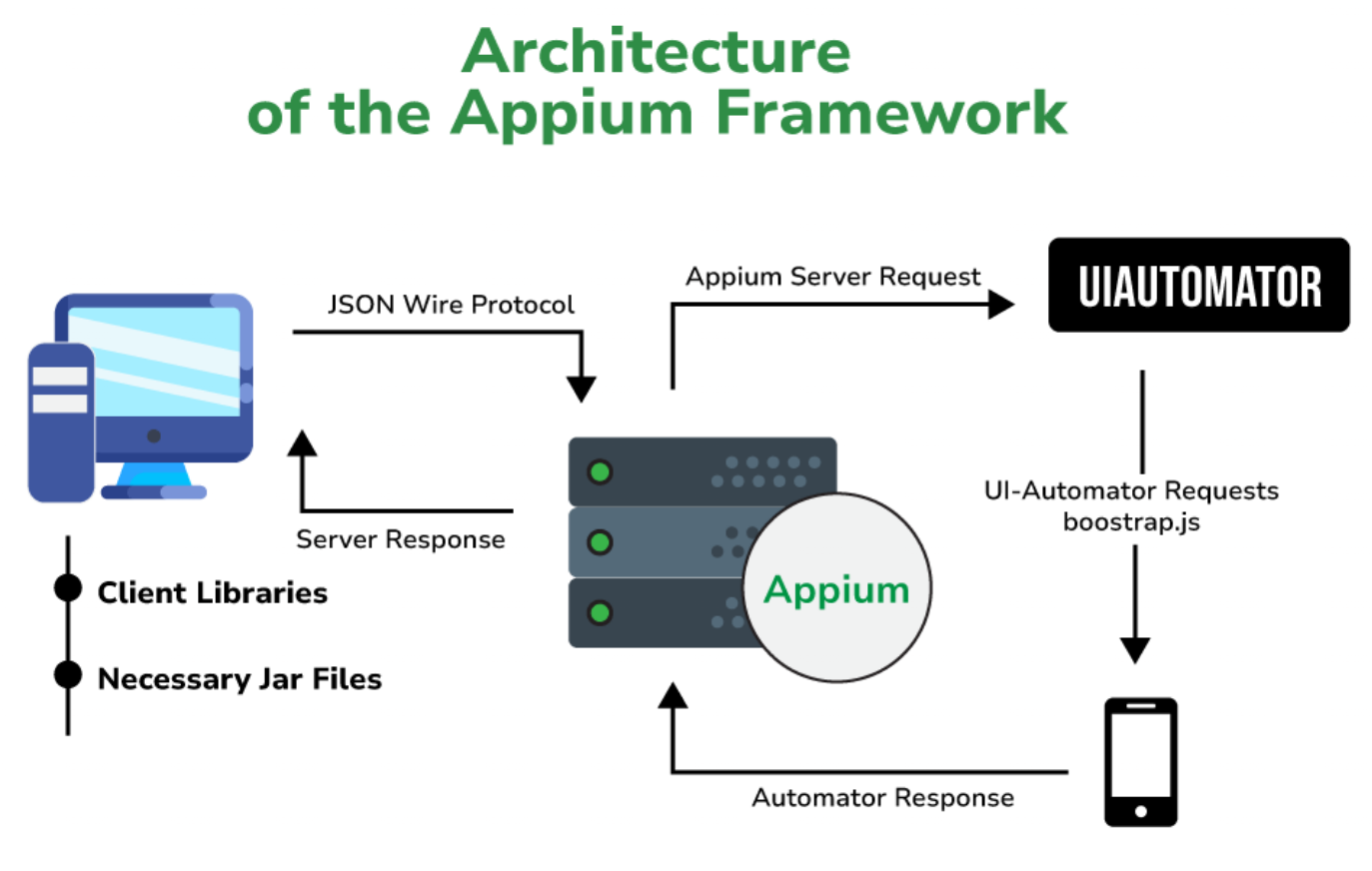 Appium采用客户端/服务器架构,核心是暴露REST API的网络服务器。它接受来自客户端的连接,监听命令并在移动设备上执行,答复表示执行结果的HTTP响应。