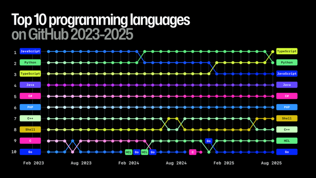 - 评估趋势:参考TIOBE、GitHub Octoverse等榜单了解语言流行度和社区活跃度。长期稳定或上升的语言通常意味着更好的就业前景和学习资源。例如,Python因AI浪潮持续领跑,Rust关注度稳步上升。