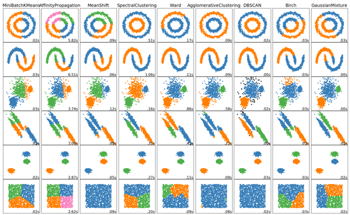 技术现实:算法选择本身就成了一个需要大量实验和经验的决策过程,这在所有聚类应用中都是常见问题。